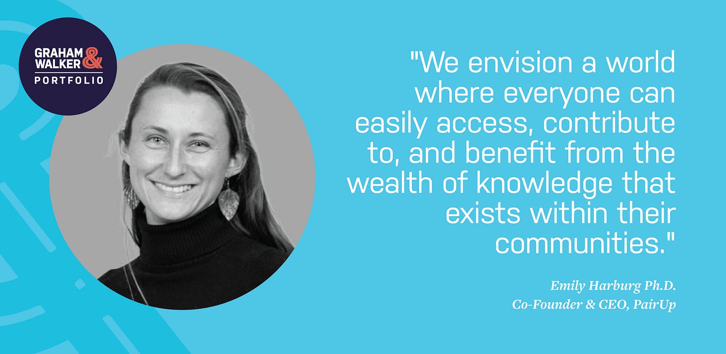 Emily Harburg, Ph.D., Co-Founder and CEO of PairUp, envisions a world where "everyone can easily access, contribute to, and benefit from the wealth of knowledge that exists within their communities."